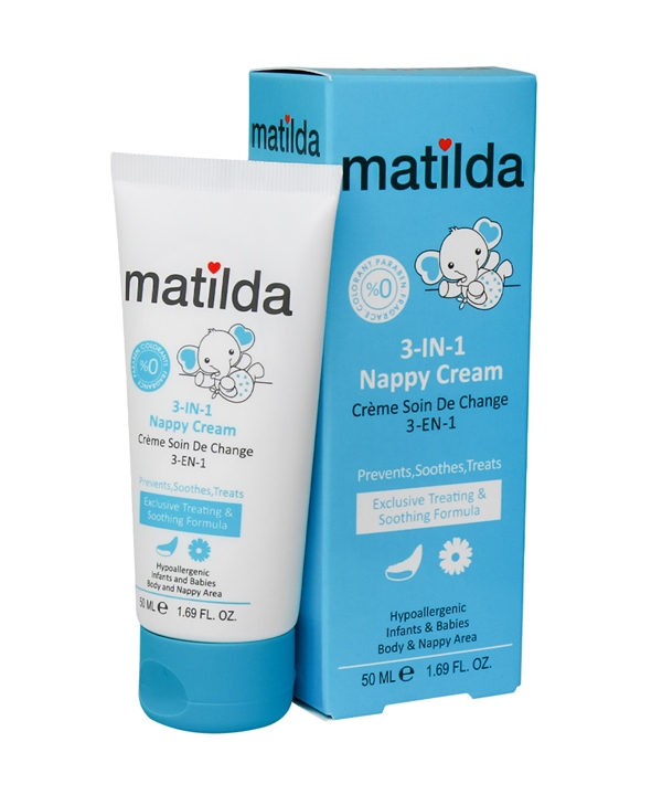 بعد از هربار تعويض پوشک، يک لايه ضخيم از کرم 3 در 1 ماتيلدا بر روي پوست خشک و تميز کودک استفاده شود.