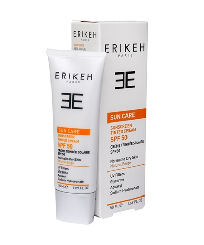 کرم ضد آفتاب SPF50 اريکه مناسب پوست‌ هاي خشک و نرمال محافظت کننده کامل پوست از اشعه‌هاي مضر خورشيد UVB و UVA است. اين کرم با ساختاري سبک به سرعت جذب پوست مي‌شود و در عين حال به دليل داشتن مواد مرطوب کننده، پوست را نرم و لطيف مي‌کند. همچنين اين محصول قابليت تجديد و پاک کردن بسيار آساني دارد. استفاده روزانه از ضد افتاب رنگي اريکه علاوه بر جذب ويتامين‌هاي مفيد خورشيد و دفع اشعات مضر آن، در درمان و جلوگيري پيري زودرس و لکه‌هاي پوستي موثر است. اين کرم با ترکيبات موثر از ايجاد لک و آکنه جلوگيري مي‌کند و با داشتن ترکيبات ضد چروک جهت رفع پيري ناشي از نور آفتاب بسيار موثر است.