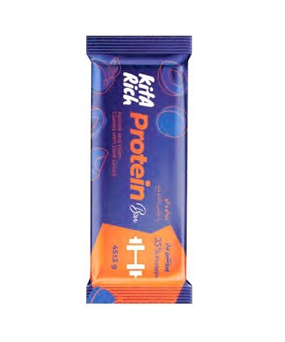 بار فشرده پروتئين دار حاوي زردآلو و آلو با روکش فرآورده کاکائويي تلخ