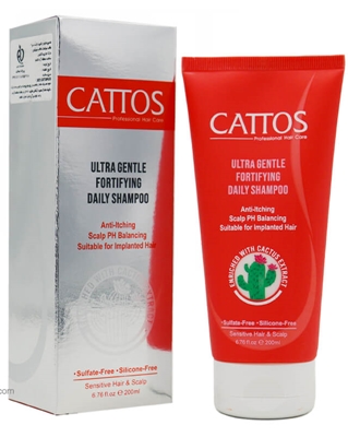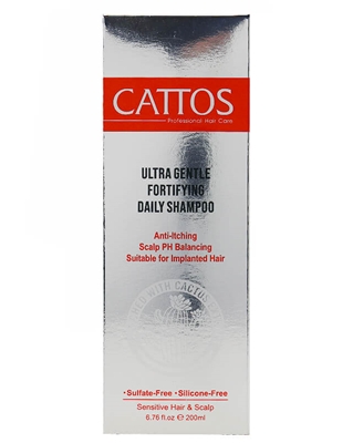 شامپو ملايم و تقويت کننده مو کاتوس Cattos, فرآورده اي حرفه اي و مراقبتي است که ويژه موهاي حساس است و دربردارنده ي ترکيب ها و عصاره ميوه ملکه شب (نوعي کاکتوس)، بهنتريمونيوم کلرايد، پانتنول، گليسيرين و … است که ميتواند موها را به شکل عالي و ملايم تغذيه کند، و با ترازمندي پي هاش pH پوست سر، باعث کاهش التهاب و خارش پوست شود.